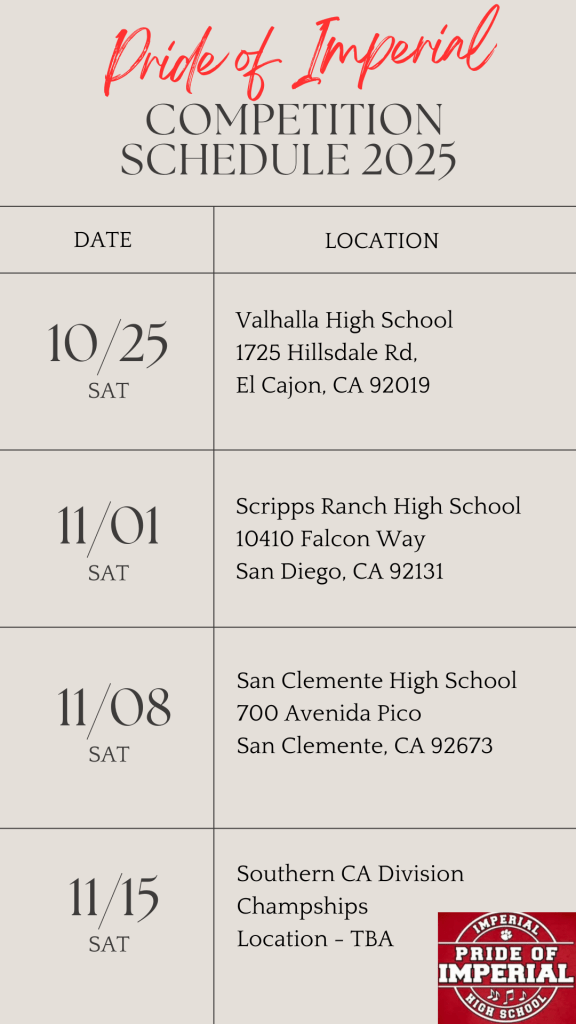 IHS Football & Halftime Performance Schedule